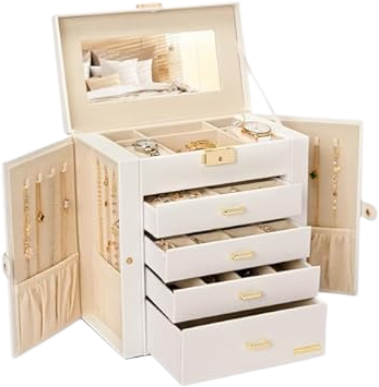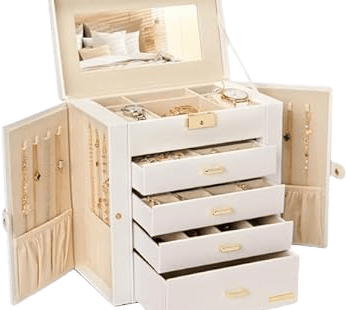 Keeps her rings, necklaces, and earrings neatly arranged in one place.