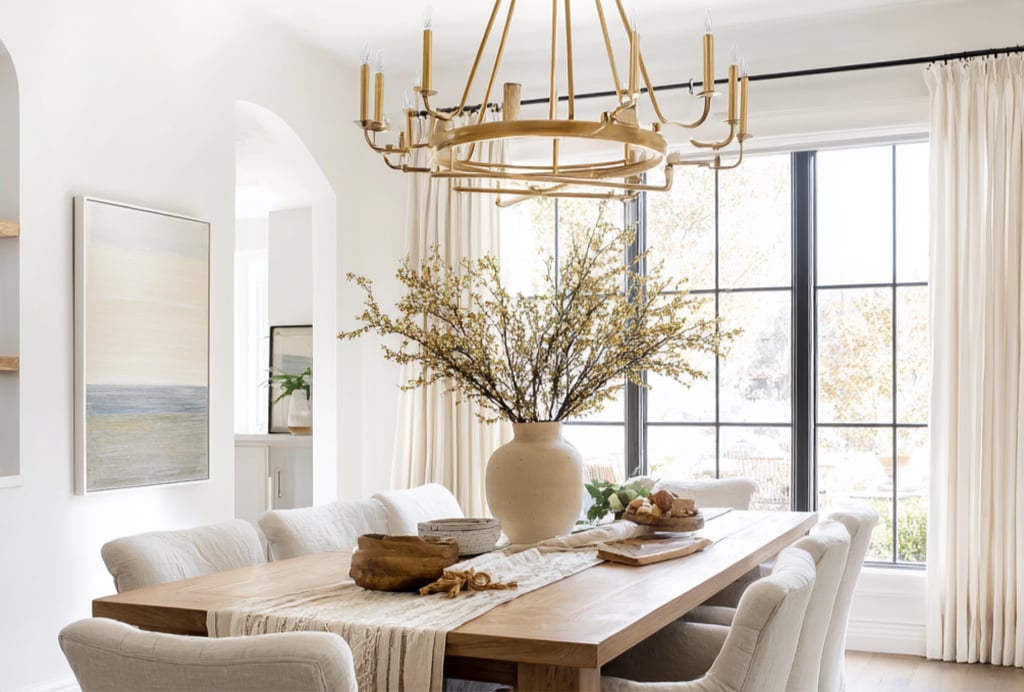 Lighting has the power to completely transform a room. Swap out builder-grade fixtures for something sculptural and eye-catching, like a chandelier in the dining room or brass sconces that frame a wall. Layer your lighting with ambient, task, and accent sources — this not only makes a space more functional, but also creates the warm, inviting glow we associate with luxury interiors.