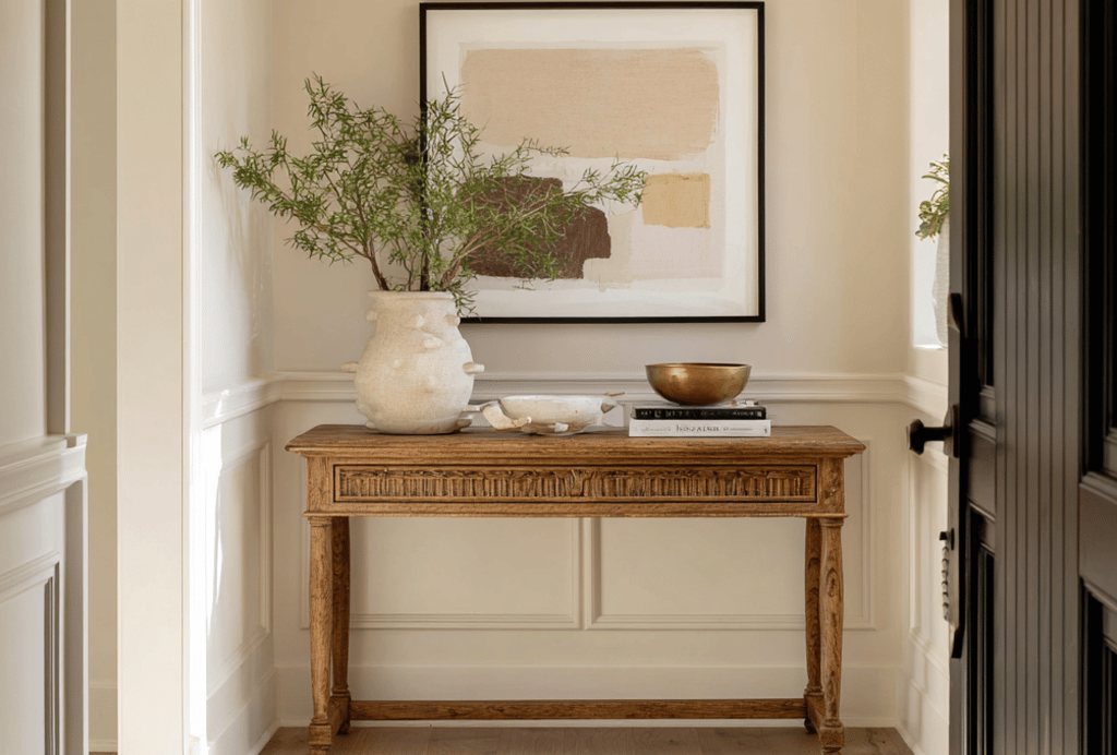 The most luxurious homes are never one-note. Mixing vintage pieces with modern design creates a layered story — one that feels collected over time rather than pulled from a showroom. A rustic console paired with abstract art, or an antique vase styled with contemporary books, brings richness and soul to your home.