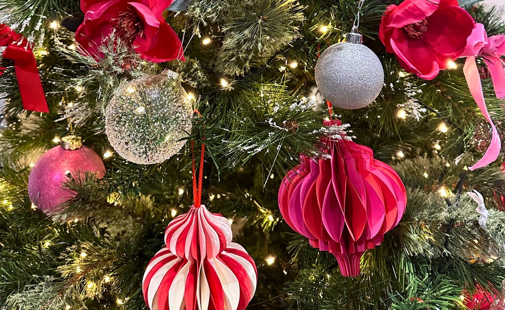 This Christmas, celebrate colour and charm with a tree that blends classic red, playful pink, and sparkling metallics. The result is a festive centrepiece that feels both joyful and refined — full of nostalgic details, handcrafted texture, and modern cheer.