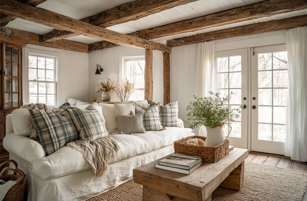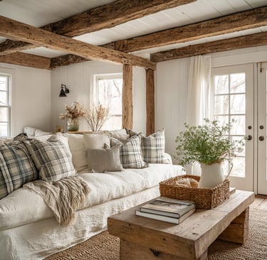 Plaid Throw Pillows – Add timeless charm and texture, perfectly balancing comfort with rustic style.