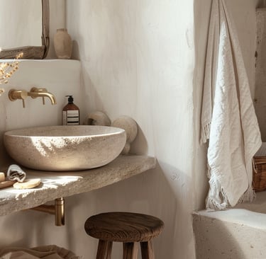 Wooden Decorative Stool – Perfect for layering towels or holding candles, enhancing the rustic and relaxed feel.