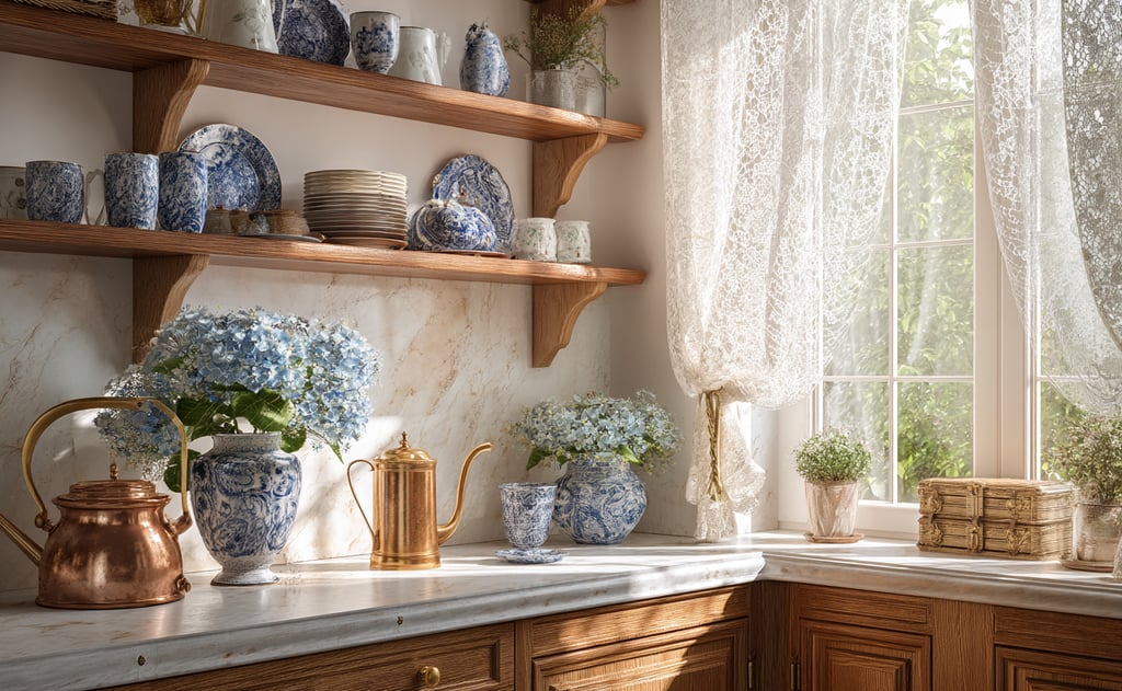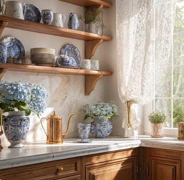 Sunlight filters through lace curtains, glinting off blue-and-white ceramics and brass kettles. It’s the most peaceful time of day — proof that beauty lives in the smallest rituals.