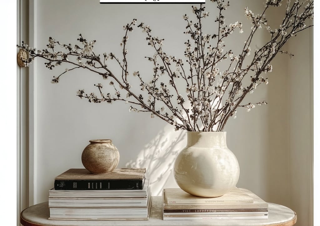 Quiet luxury is built on natural materials that feel honest and age beautifully. In this space, the focus is on subtle contrasts — smooth ceramic, natural wood, and delicate branches — layered quietly rather than styled for impact.