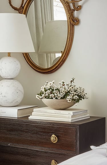 Each item has space around it, allowing materials and form to stand out naturally. The result feels collected over time rather than styled all at once, which gives the room a calm, lived-in elegance that translates beautifully on Pinterest.