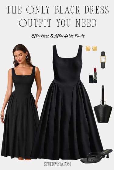 A black dress is one of the easiest pieces to style when you want to look effortlessly put together. Simple, timeless and versatile, it works for everyday wear, dinners or a more polished look. Explore the outfit below and discover similar affordable finds.
