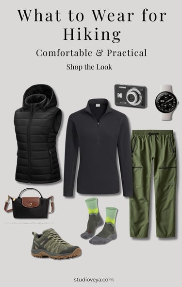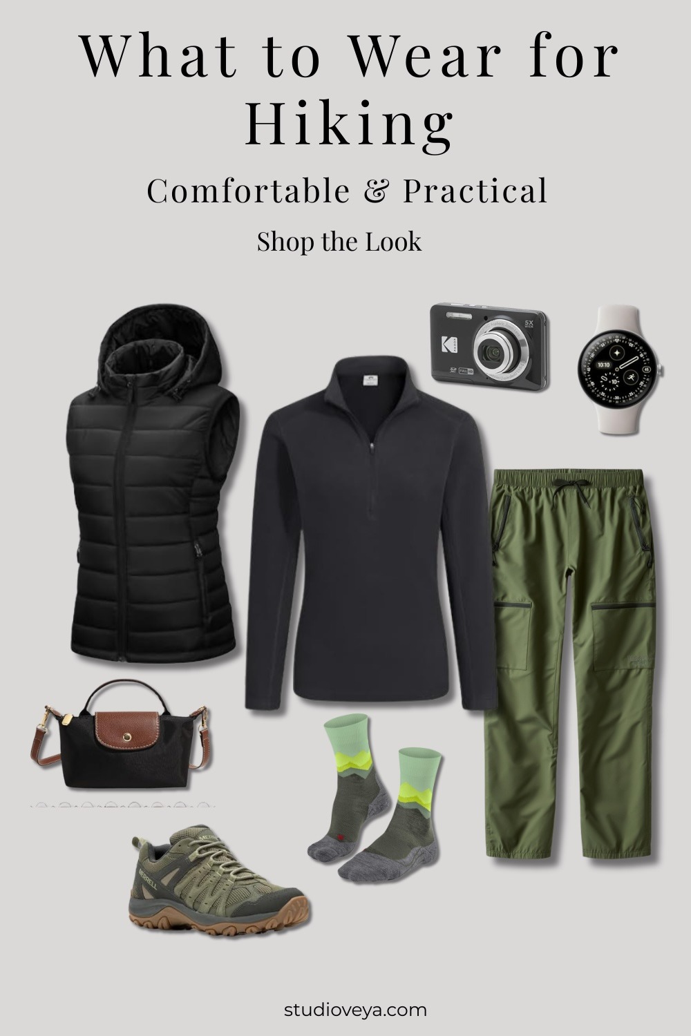 Leggings, a breathable top, and a lightweight vest or jacket provide flexibility for changing conditions. Accessories like a crossbody or belt bag keep essentials close without adding bulk.
